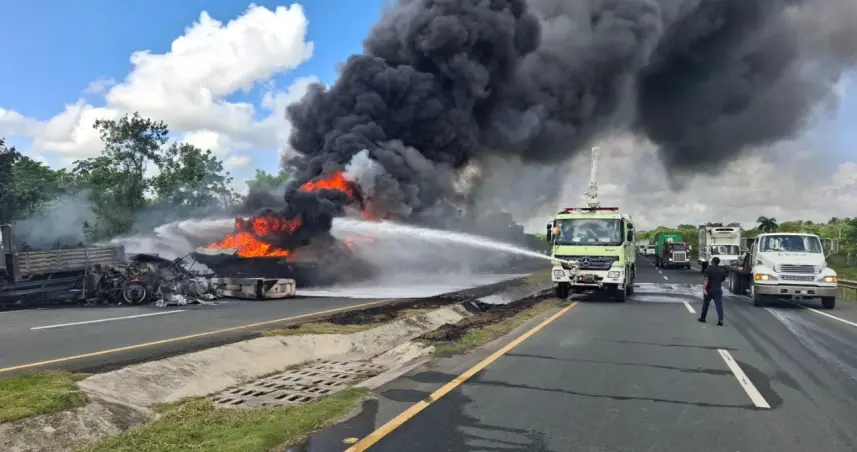 AERODOM apoya control de incendio de camión tanquero en la Circunvalación SD