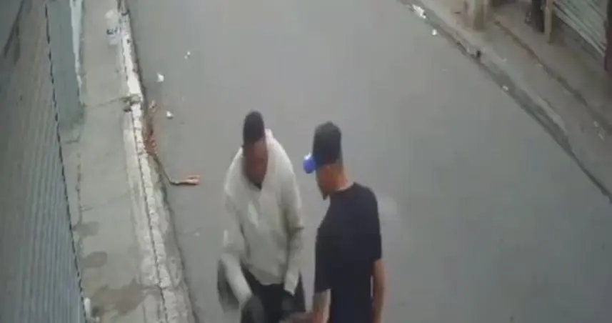 El video exhibe el momento en que dos individuos golpean a un hombre para que se baje de su moto, mientras otros vigilan el asalto.
