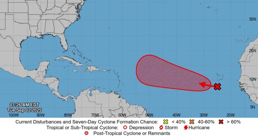 Centro Nacional de Huracanes vigila sistema en el Atlántico que podría convertirse en depresión tropical