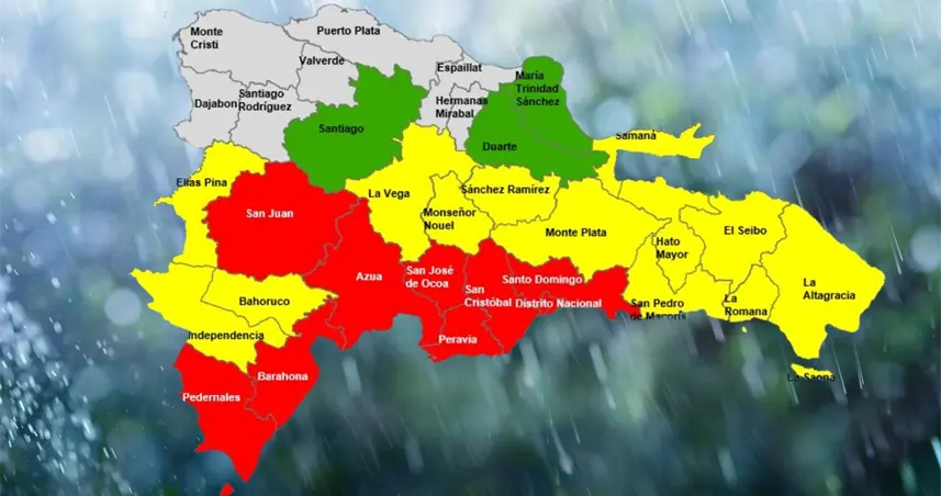 Alerta roja: Barahona, San Juan, San Cristóbal, Azua, Prov. Santo Domingo, Peravia, Distrito Nacional, Pedernales, San José de Ocoa.