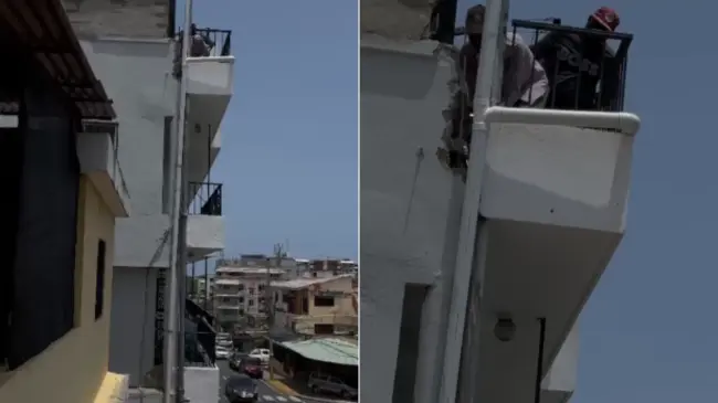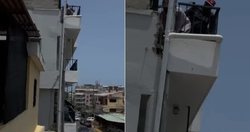 Se ha podido observar a obreros taladrando la estructura de un balcón, desde donde caen fragmentos de concreto sin ningún tipo de protección ni señalización que resguarde a los peatones.