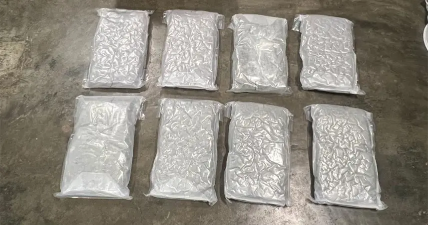 Por instrucciones del fiscal actuante, se procedió a abrir el recipiente, localizando en su interior, un total de ocho paquetes de marihuana, empacados en fundas de color blanco, con un peso aproximado a las 10 libras.