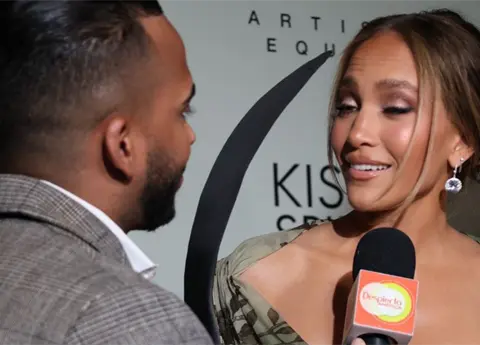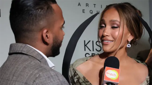 Dominicano Bryan Mejía entrevista a Jennifer López en la premier de "El Beso de la Mujer Araña"