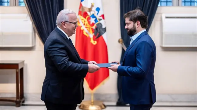 Santiago de Chile. – El Embajador Extraordinario y Plenipotenciario de la República Dominicana en Chile, Juan Cohen Sander, presentó este miércoles sus Cartas Credenciales ante el Presidente de la República de Chile, Gabriel Boric Font, en una ceremonia oficial realizada en el Palacio de La Moneda.