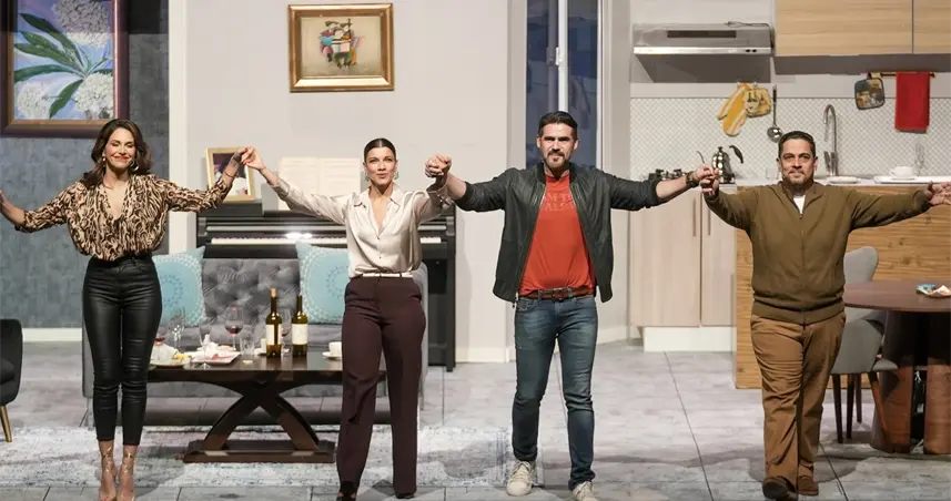 - Con funciones a casa llena, esta aclamada comedia teatral, que contó con la producción de Luly Rocha y Luis José Germán, el público disfrutó de una pieza que puso en contexto el matrimonio desgastado, rutinario y monótono de Ana y Julio, quienes reciben la visita por primera vez de sus vecinos del piso de arriba, Laura y Salva, una pareja moderna y liberal que hacen de una cena amena, una noche cargada de reproches, prejuicios y señalamientos.