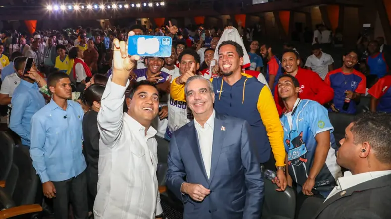 Al final del acto, el presidente Abinader posó para la foto oficial junto a los atletas y autoridades, mientras que el ministro Kelvin Cruz grabó un video tipo selfie con el primer mandatario, capturando un momento de espontaneidad y camaradería que reflejó el espíritu alegre y juvenil de la inauguración.