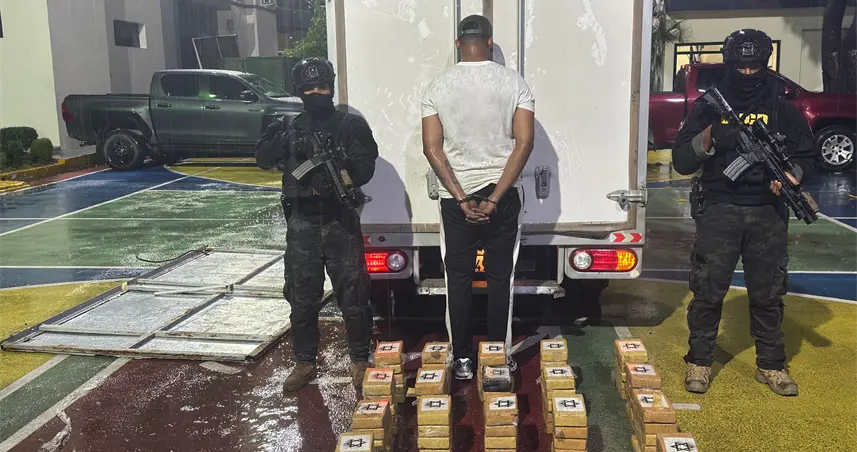 DNCD incauta 85 paquetes de presunta cocaína escondidos en techo de camión en Pedro Brand
