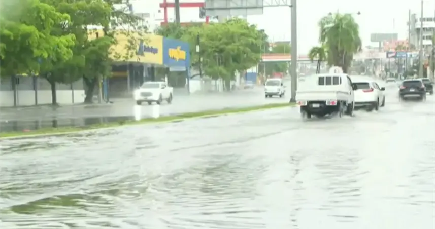 Desde la calle Guarocuya, próximo a la avenida Luperón, el agua acumulada desde temprano comenzó a descender cuando la lluvia se detuvo momentáneamente, pero volvió a subir de nivel tras reiniciarse el aguacero minutos antes de su reporte.