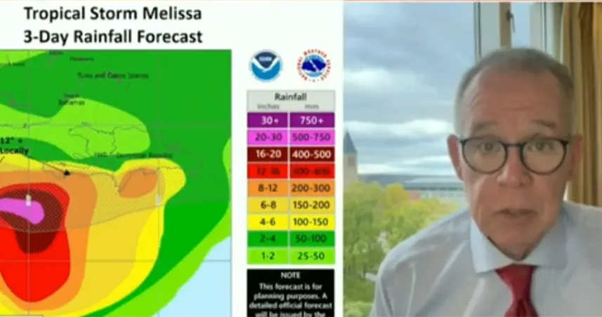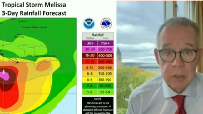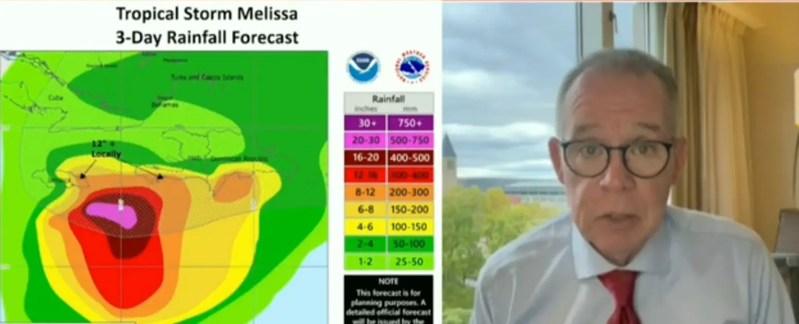 "Lo más preocupante sigue siendo la lluvia constante, más que los vientos o la marejada ciclónica", señaló Morales. Actualmente, Melisa mantiene vientos sostenidos de 75 a 80 km/h en su núcleo, pero se observa un proceso de organización que podría intensificarla a huracán entre viernes y sábado, mientras permanece cerca de Haití y República Dominicana, afectando principalmente con precipitaciones continuas.