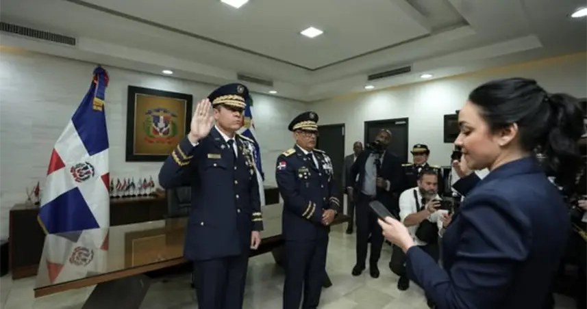 El acto inició en el despacho de la Dirección General, donde la ministra de Interior y Policía, Faride Raful, tomó juramento al nuevo titular policial.
