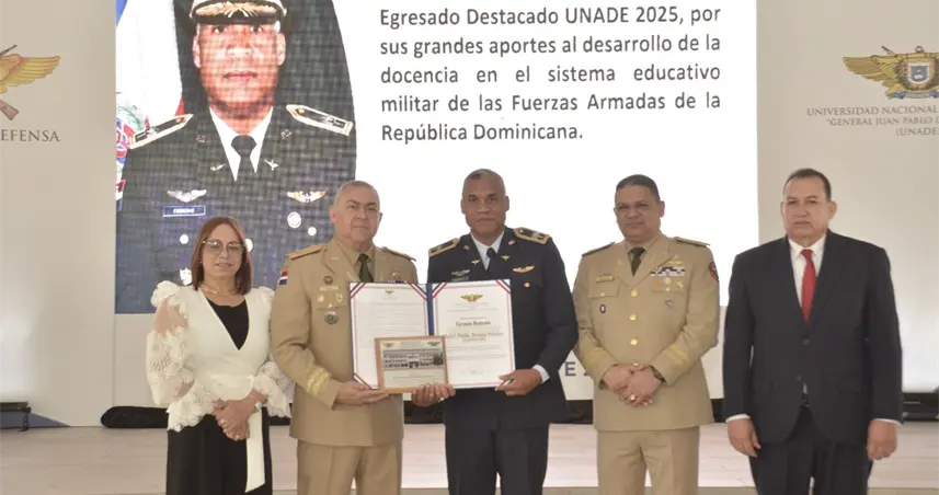 Santo Domingo.– El Ministerio de Defensa y la Universidad Nacional para la Defensa "General Juan Pablo Duarte y Díez" (UNADE) celebraron el acto "Honor al Mérito Docente y Egresado Destacado UNADE 2025", en el que se exaltó el liderazgo, la vocación de servicio y la trayectoria de quienes fortalecen la educación militar dominicana.