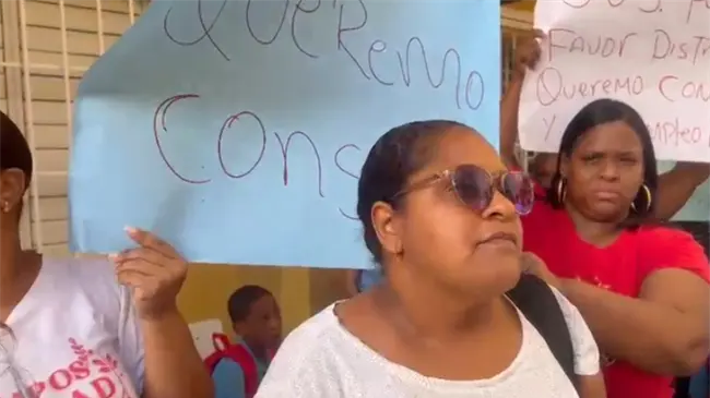 Santo Domingo Oeste.– Padres de la escuela Nicolás Ureña de Mendoza, ubicada en el sector La Venta de Manoguayabo, protestaron este lunes debido a las precarias condiciones de higiene que tiene el centro educativo por falta de conserjes.