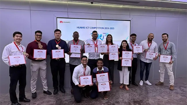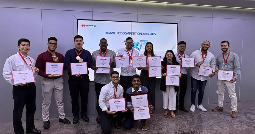 Santo Domingo.– Huawei realizó una actividad de reconocimiento a los equipos universitarios que participaron en la competencia internacional ICT Competition 2024-2025, donde estudiantes y profesores dominicanos compitieron con equipos de Centroamérica y el Caribe en tecnologías emergentes.
