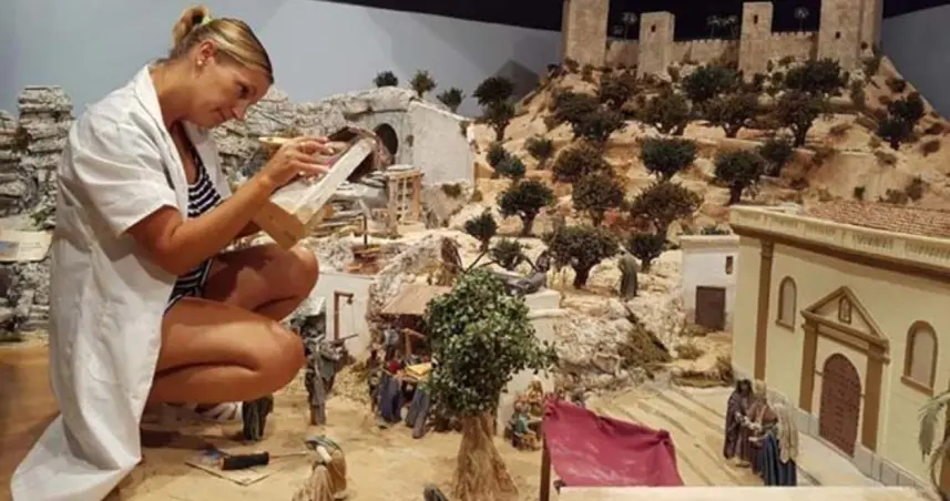 La responsable de preparar este belén pieza a pieza, Mayka Gómez, contará con la ayuda de dos artesanos para recrear este año casi un centenar de rincones pintorescos y monumentos de toda la geografía española que se convertirán en el escenario de diversos pasajes bíblicos.