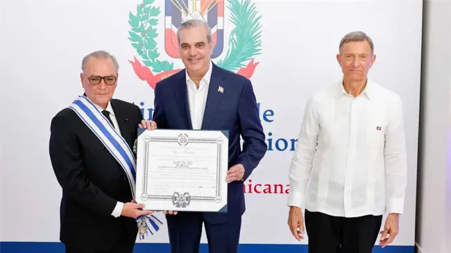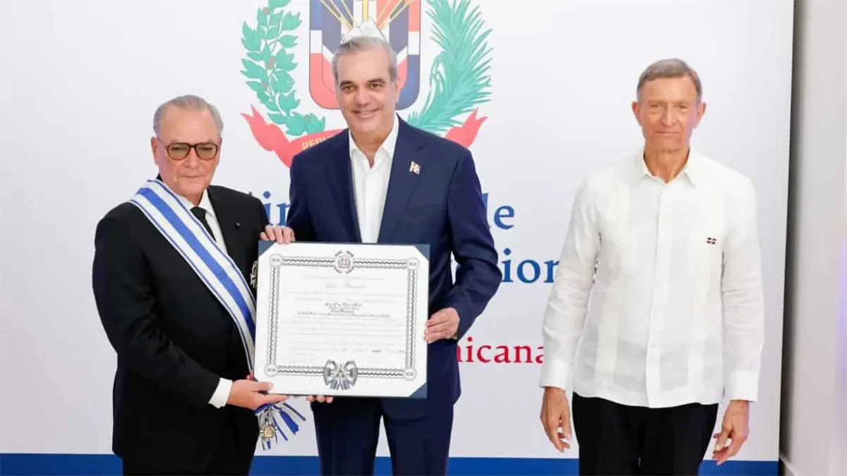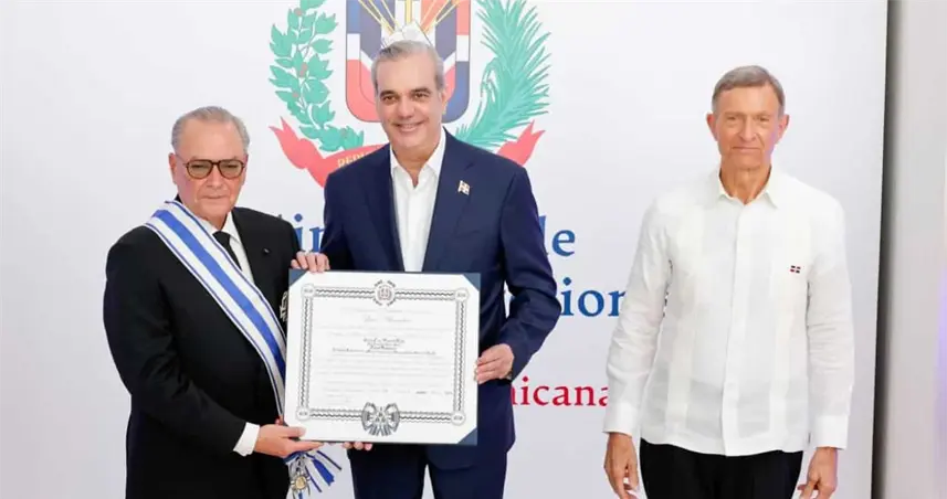 La distinción fue entregada por el presidente de la República Dominicana, Luis Abinader, en un acto celebrado en la Cancillería, acompañado de la primera dama Raquel Arbaje y el canciller Roberto Álvarez.