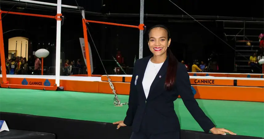 La juez internacional Mery Luz Infante lidera la competencia de gimnasia en Santo Domingo.