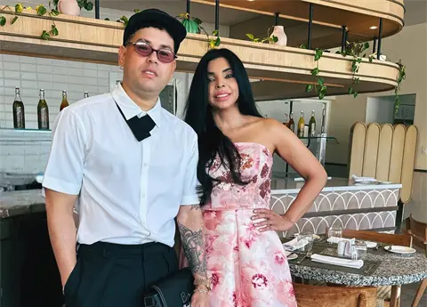 El cantautor Shadow Blow muestra su agradecimiento a Yeni Berenice por su participación en el desfile de inclusión de LibertyRD en RD Fashion Week 2025.