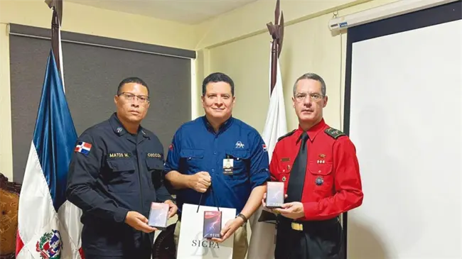 Durante esta jornada integral, el gerente general de SICPA Dominicana, Amaury Abreu, capacitó al personal de Operaciones e Inteligencia de CECCOM en el uso de herramientas modernas de inspección y la aplicación móvil «Revísame», diseñada para verificar de forma rápida y precisa las estampillas de control fiscal en bebidas alcohólicas y cigarrillos.
