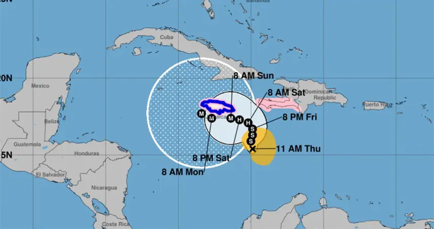 El NHC mantiene una alerta de huracán para la península suroeste de Haití, desde la frontera con República Dominicana hasta Puerto Príncipe, así como para Jamaica, donde también está vigente una advertencia de tormenta tropical.