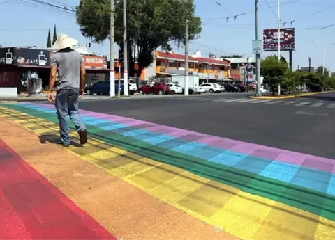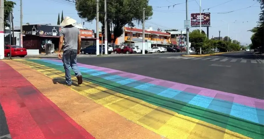Este tipo de cruces, comunes como expresión artística en barrios simbólicos para la comunidad LGTBIQ+, han sido señalados por las autoridades estatales como contrarios a los nuevos estándares federales.