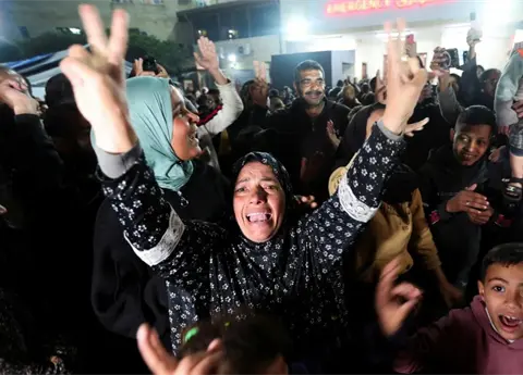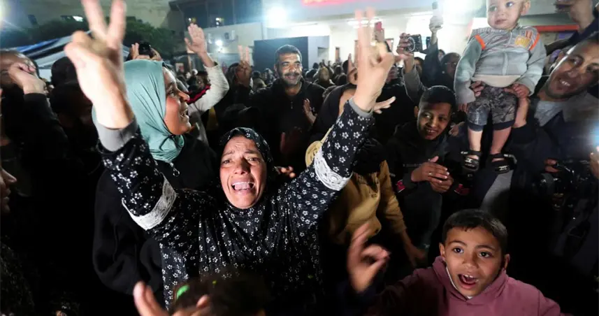 Tras anunciarse el cese al fuego, durante la noche algunos gazatíes se echaron a la calle a celebrar la noticia, entre música y aplausos, en localidades como Jan Yunis (sur) o Deir al Balah (centro), según las imágenes difundidas por la cadena catarí Al Jazeera.