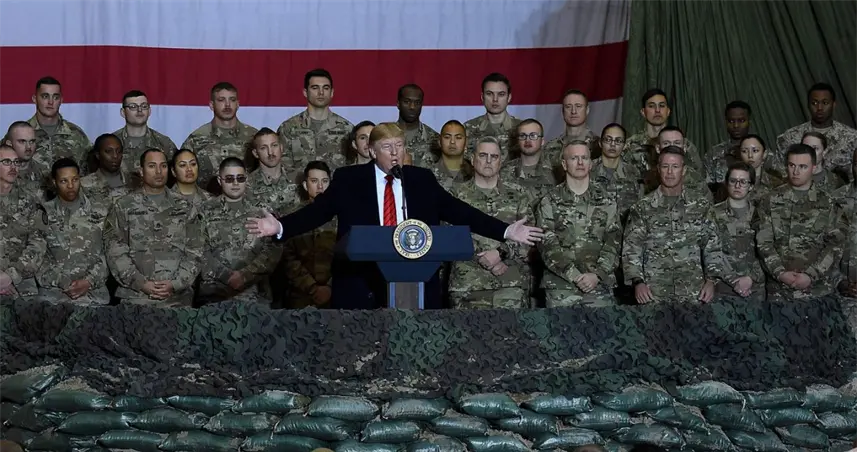 El presidente de Estados Unidos, Donald Trump, con sus tropas militares.